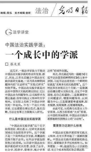 近几年,一批法学家致力于推动中国法治实践学派的形成和发展,浙江、河北、江苏先后建立中国法治实践学派研究基地,一系列具有鲜明问题导向的“实证研究”“实验式研究”相继开展。中国法治实践学派是对法治中国伟大实践的理论回应,它以中国法治为问题导向,以实践哲学为理论基础,倡导实践主义精神和实学精神。它实际上反映了中国法学研究的一种走向。作为一个成长中的学派,它还需要在理论范式、基石范畴、方法论变革三方面做深入研究。